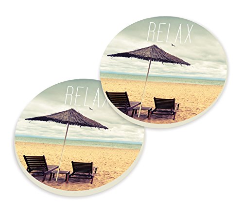 Relax Beach Chair Shore Set of 2 Ceramic Car Coaster Pack