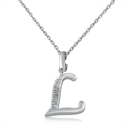 - Title : Diamond Initial L Charm Pendant in Sterling Silver on an 18in. Chain