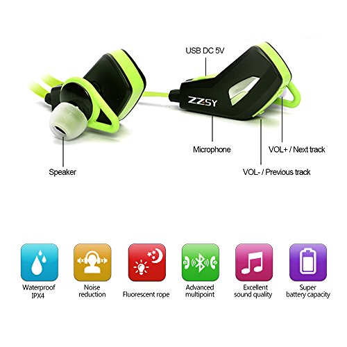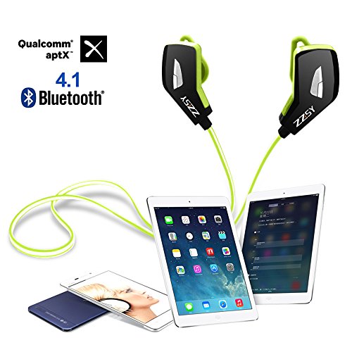 Bluetooth Headphones,ZZSY V4.1 Wireless Bluetooth Earphone, Stereo In-Ear Noise Cancelling Sweat-proof Sports Headset with Microphone and APT-X for iPhone 7, iPad,Samsung and Android Phones Green