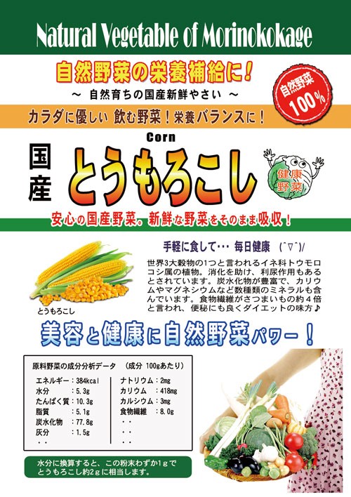 ・・商品特徴・・ その他、リノール酸やオレイン酸も沢山含んでおり、善玉を増やし悪玉コレステロールを減らす働きがあるので、動脈硬化の予防、改善にも効果があるとされています。 栄養ドリンクなどにも入っているアスパラギン酸も含まれ、エネルギー代謝を良くし、疲労に対する抵抗力を高めてくれます。 ビタミンB1やB2はエネルギーの代謝に大きく関わる栄養素なので、これも熱い夏を乗り切るエネルギーに繋がります。 そして、若返りのビタミンと呼ばれるビタミンE。 ビタミンEはビタミンのなかで最も強い抗酸化作用を持ち、 血行を良くし、冷え性、肩凝り、更年期障害の緩和にも役立つでしょう。 ・・その他・・ 保存方法:開封前 直射日光、高温多湿を避ける開封後密封、低湿度 | | | 粉末の状態 |  | | 主な原産地:北海道 | ・・有効成分・・ 炭水化物、カリウム、マグネシウム等数種類のミネラル、 ・・使用部位・・ 種子 ・・原産国・・ 北海道 | |