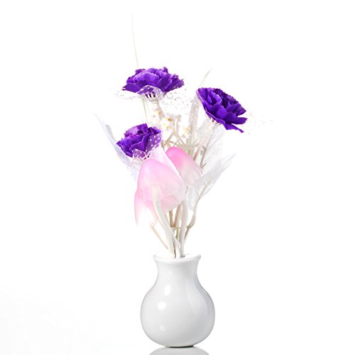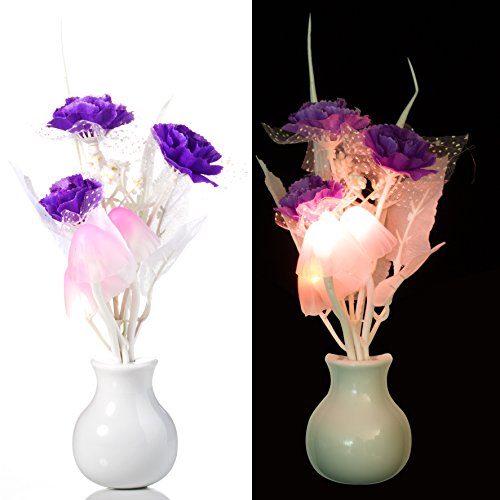 Lilac Flower Mushroom LED Night Light Color Changing Plug-In Night Lamp Purple Home Decoration