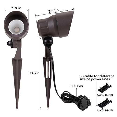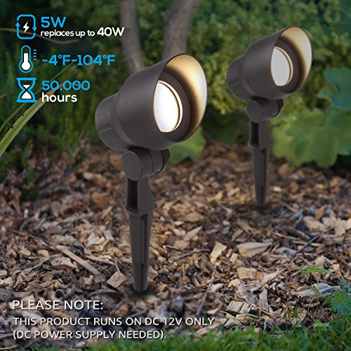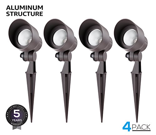 5W LED Outdoor Landscape Light, Adjustable Pathway Lighting, IP65 Waterproof, UL Listed Cable, DC12V ONLY, 3000K Warm White, Aluminum Housing, for Driveway/Yard/Lawn/Garden, 5 YEARS WARRANTY, 4 Pack