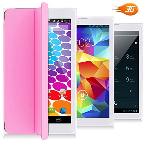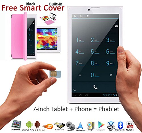 7.0 inches Android 4.4 Kitkat 3G Phablet 2-in-1 Tablet PC + GSM Wireless SmartPhone (Call as mobile phone) with FREE Smart Cover Case Built-in, Google Play Store and HD Capacitive Multi-Touch Screen