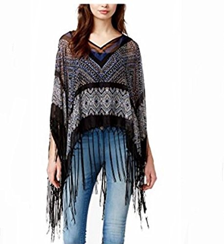 (Steve Madden)/Accessories/Cold Weather Accessories/DIRECT FROM USA/Steve Madden Womens Tribal Split-Neck Poncho Blue