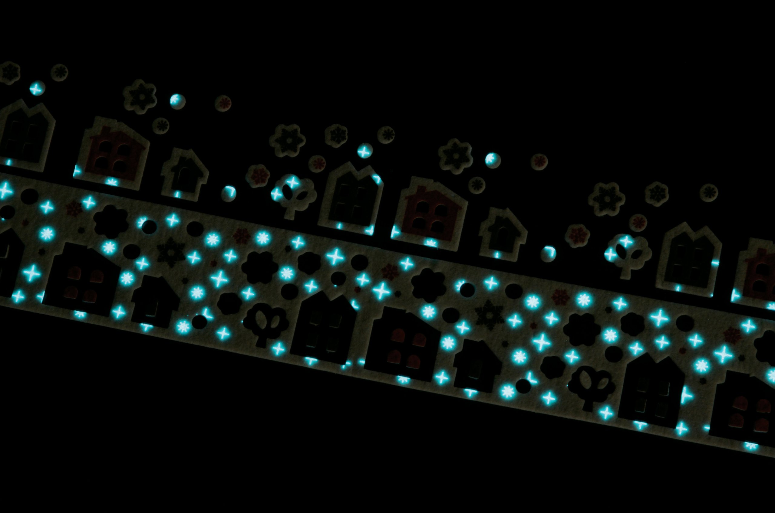Enjoy the design with a die-cut silhouette during the day and a pattern of fluorescent blue emerges when you darken the room at night, so you can enjoy it as a beautiful interior that shines.