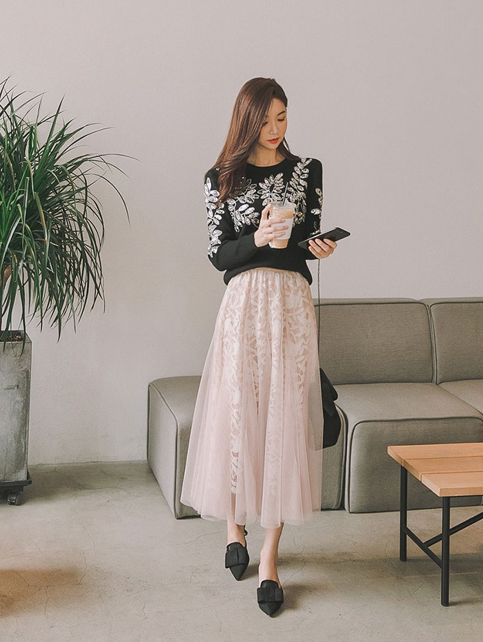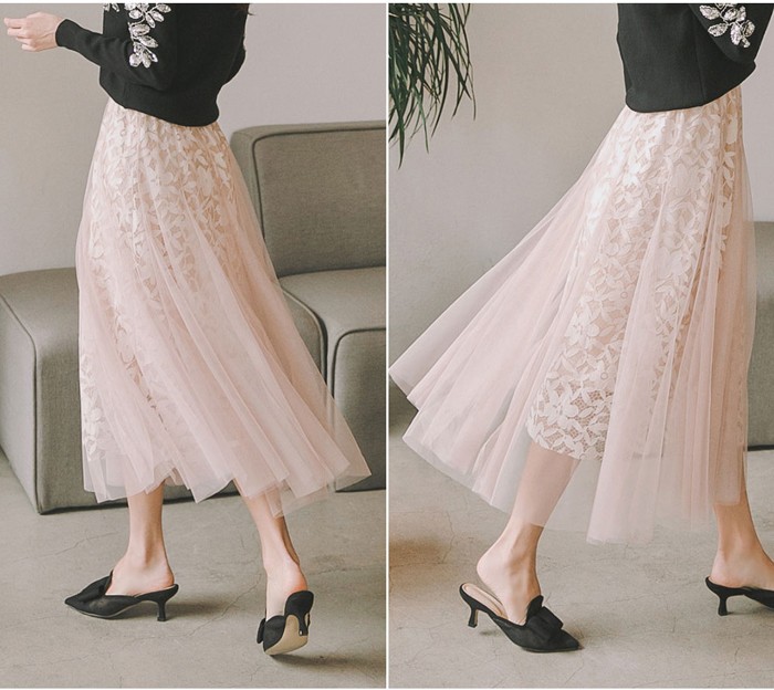 商品名:スカート ロング丈 ロングスカート チュール
