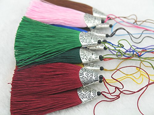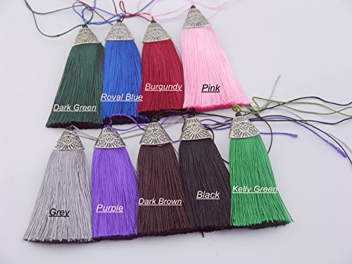 18 Colors 10pcs Silky Handmade (2.2'') Soft Fiber Tassels with Antique Silver Cap
