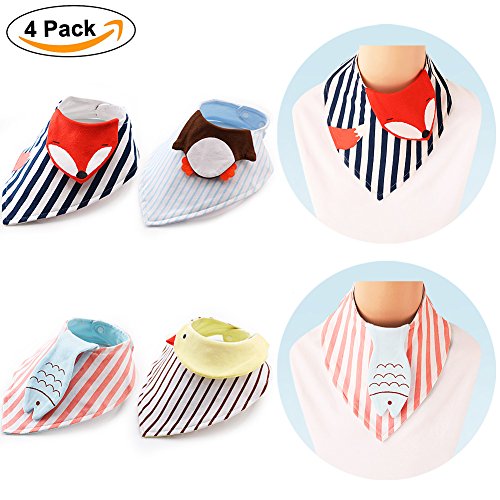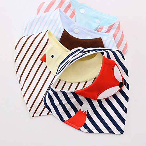 -. Binding : Baby Product -. Brand : Baby Mate -. Feature : STYLISH BABY DROOL BIBS WITH DIMENSIONAL CARTOON ANIMALS DESIGN - Designed to look great on both boys and girls - Decorated with dimensional brightly-colored fox, penguin, chicken and fish with neutral stripes, giving your baby a stylish addition to their adorable outfits; bringing to life Disney and Pixar stories; making mealtimes more fun and colorful - Two adjustable snaps provide different sizes as baby grows. Soft combed cotton is for water absorbency - keep your baby fashionable and cozy. / A MUST-HAVE FOR BABY'S LITTLE BUNDLE OF JOY - Keeps your baby clean and dry all day long: absorbs your baby's drool to shield your baby from discomfort caused by wetness; offers reliable protection for your baby's clothing from food, makes new mom's life easy - Designed with adjustable snap closures with 2 positions, preventing the bib from falling off and hindering crawling or movement as baby grows - Can be folded up really small for easy packing - Babies will look awesome in the trendy bibs. / FEATURES PREMIUM COMBED COTTON FABRIC - Spun from 100% premium combed cotton - Compared with other cotton materials, the combed cotton is softer and safer because it lacks short threads to stick out and P.R.Ickle; all dirt and impurities are removed from the thread; shorter and breakable fibers are removed through combing, protecting baby's sensitive skin from irritation & rashes - Double layer is designed to absorb sufficiently good quantities of moisture, keeping baby cool and dry all day long. / ADJUSTABLE SNAP CLOSURES MAKE YOUR BABY MORE COMFORTABLE AND SAFER - Curved snap closures eliminate any risk of scratches, ensure no hair or clothing can be caught, make it difficult for babies to unfasten - Easy to attach around the baby's neck, let your baby have a comfortable feel - Made from environmentally friendly dyes, washing gently won't make the colors fade, keeping your baby safer - 100% combed cotton is less likely to fray and unravel to increase overall durability. / SATISFACTION GUARANTEED - Genuine BABY MATE Trademarked Baby Safety Product - Design and Quality by BABY MATE LLC of CANADA - TRADEMARK filed in U.S.A. - In business since 1995 - Satisfaction Guaranteed! If not, we shall send a free replacement or issue a full refund. - For U.S. customers, this product comes with 1-MONTH FREE TRIAL & FREE life time customer service - You can always come to us for discounted parts or free customer service at: http://www.amazon.com/seller/BABY-MATE -. Label : BABY MATE BABY SAFETY SOLUTIONS LLC -. Manufacturer : BABY MATE BABY SAFETY SOLUTIONS LLC -. ProductGroup : Baby Product -. ProductTypeName : BABY_PRODUCT -. Publisher : BABY MATE BABY SAFETY SOLUTIONS LLC -. Studio : BABY MATE BABY SAFETY SOLUTIONS LLC -. Title : BABY MATE Set of 4 Combed Cotton Dimensional Cartoon Animals Baby Bibs with Snaps - Bibs for Boys - Drool Bibs Girl - Baby Bandana Drool Bibs - Bibs Burp Cloths