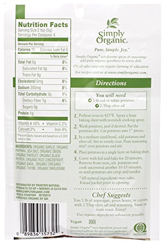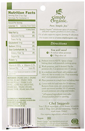 -. Feature : Veggie seasoning packet / Garlic herb is a savory, versatile blend that shines on all vegetables / Certified organic, Kosher / 1% of all simply organic net sales goes to support organic agriculture - through research, education and grower development / A brand of Frontier Co-op, responsible to people and planet