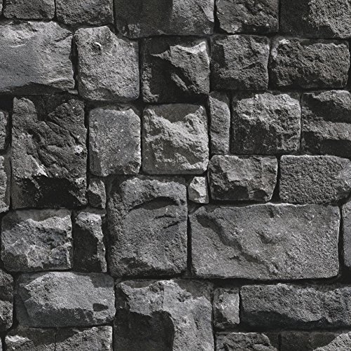 -. Title : Birwall 2015 Faux Stone Textured Wallpaper Roll 3d Brick Blocks Home Decoration,20.8" x 393.7",Dark Gray