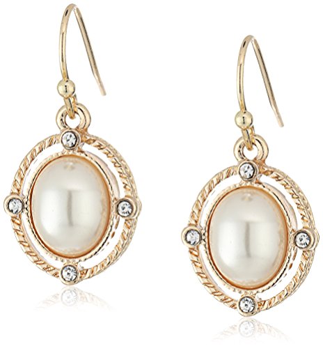 1928 Jewelry Gold-Tone Simulated Pearl and Crystal Accent Oval Drop Earrings