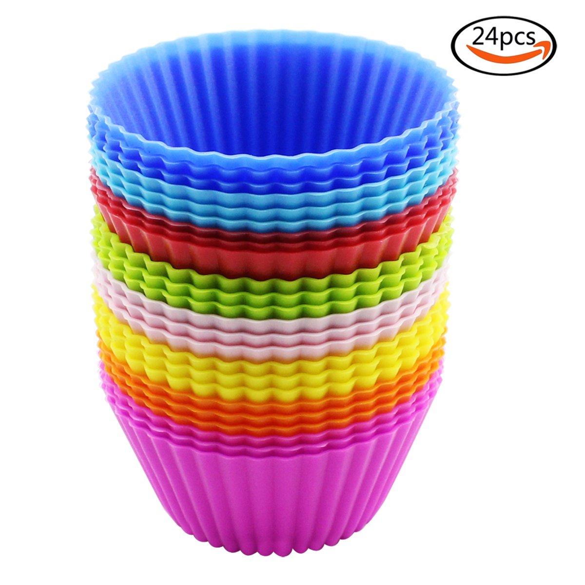 Whonline 24 pieces Silicon Muffin Cup Round Cake Mold Baking Cup