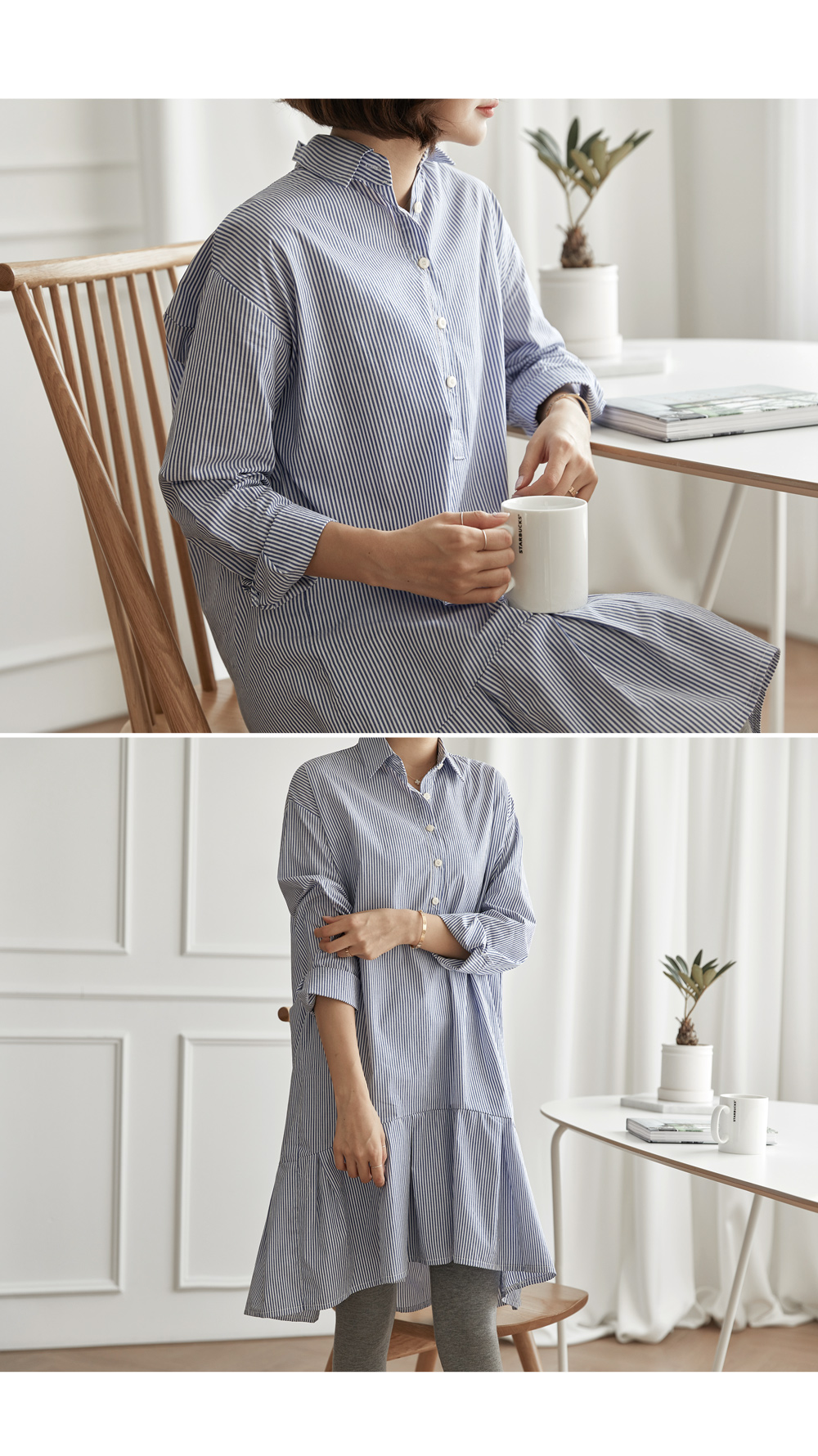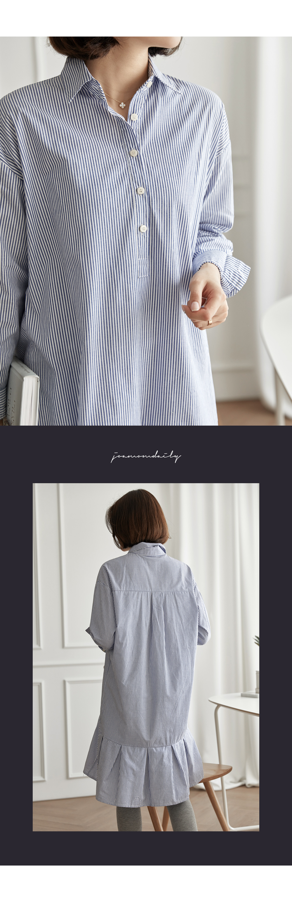 ハーフオープンスタイルのシャツのデザインです。 そこに裾がピンタックしわが寄っていて フリルデザインで、女性らしさをよりくれんです。 自然アンバランスな長さの感覚作ってくれ ひそやかポイントになっている可愛らしいデザインです。