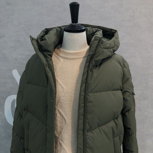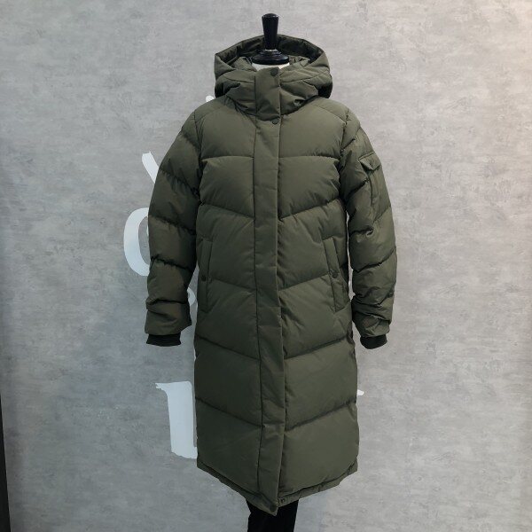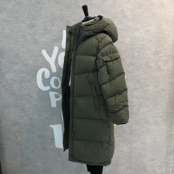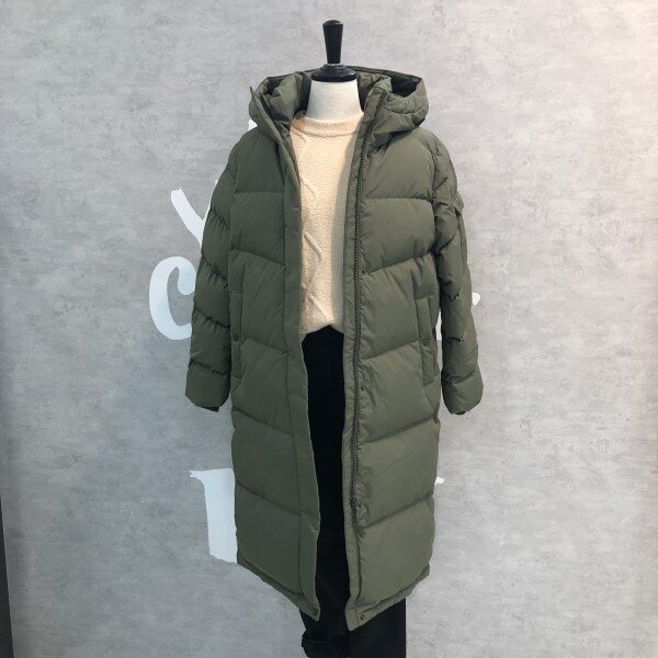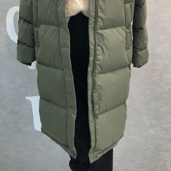 퀼팅 디자인에 오리털충전재로 보온성이 우수한 심플한디자인의 롱패딩 점퍼입니다