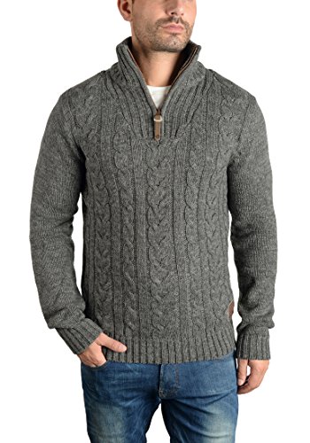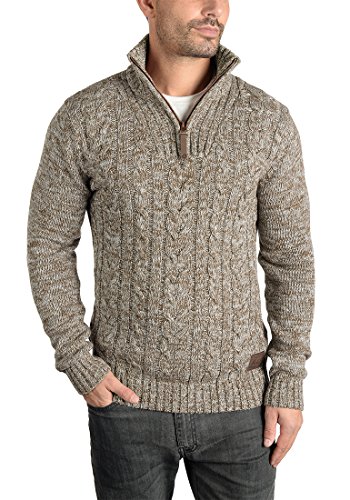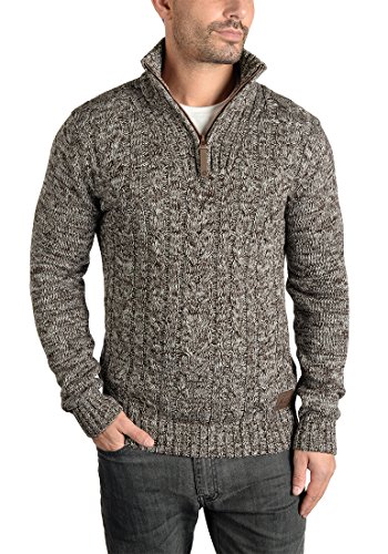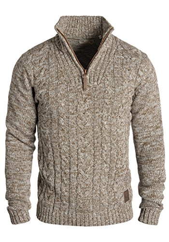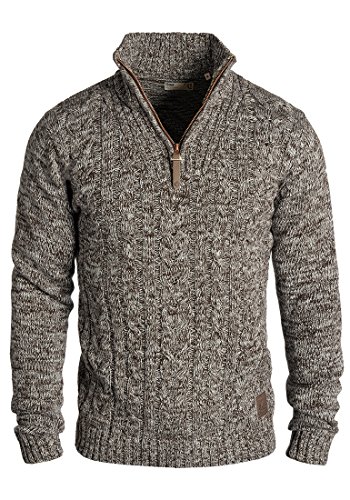 !Solid SOLID Pankraz Herren Strickpullover Grobstrick Pulli Troyer mit Stehkragen aus 100% Baumwolle Meliert