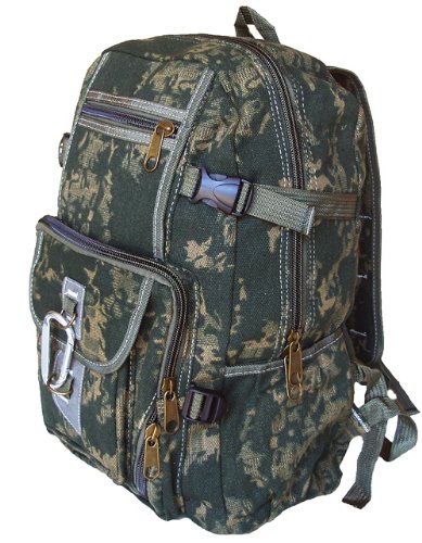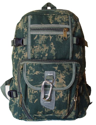 -. Title : Military Inspired Canvas Backpack Bookbag Olive Camouflage