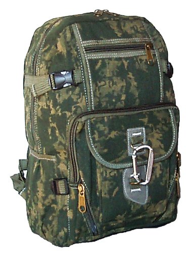 -. Feature : Made from durable canvas. / 1 main compartments, 5 smaller compartments and pockets, 2 side pockets and 1 inside pocket. / Adjustable padded shoulder straps for carrying comfort. / Dimensions:19"(H) x 6 (D) x 13"(W) / Color:Olive Camouflage