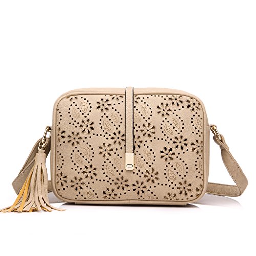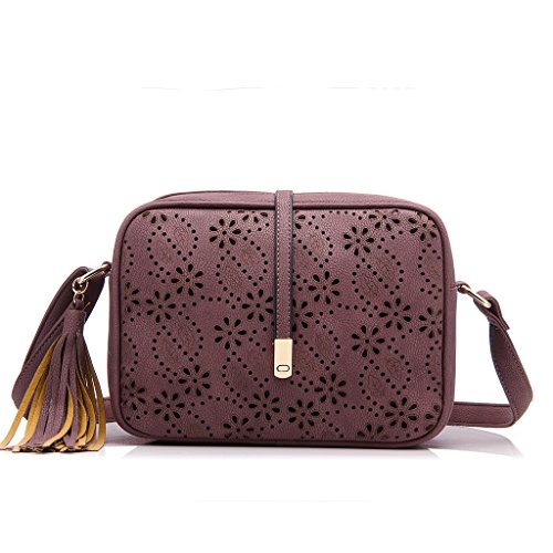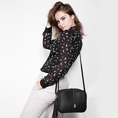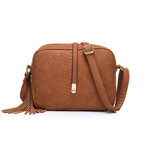 Side with tassels charm. Back with zipper pocket.Shoulder bag size:8.7" x 7.1" x 2.8"(WxHxD) strap height: 8.7"-20.5"