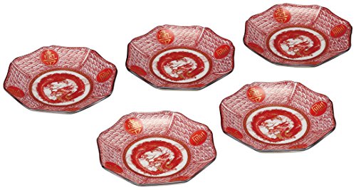원본상품명: 九谷? 4.2?皿 ? (5枚セット) 赤?龍文 K4-114