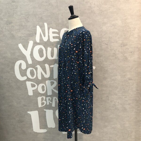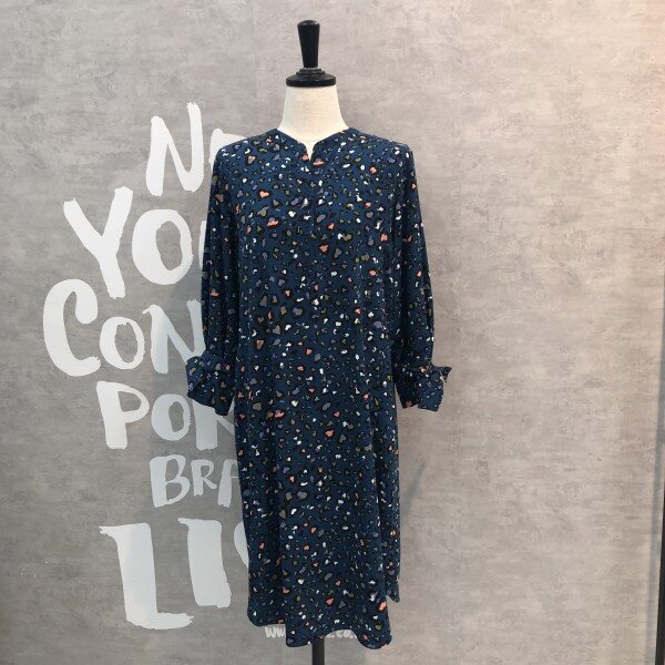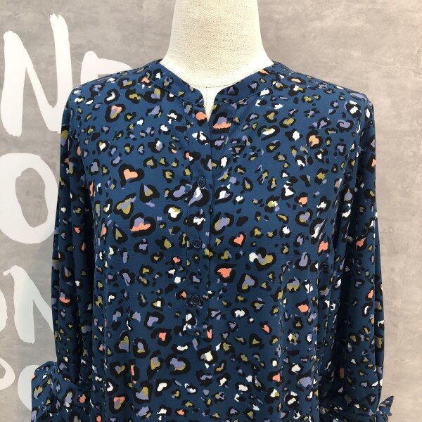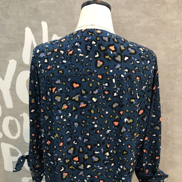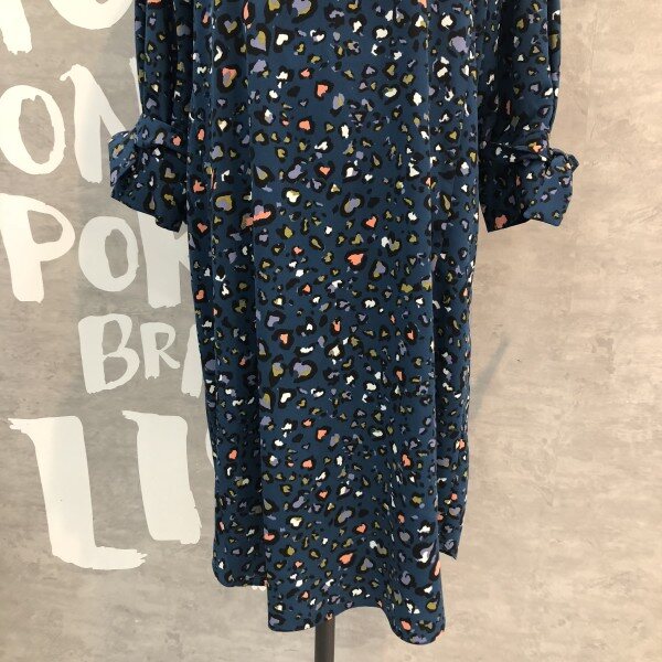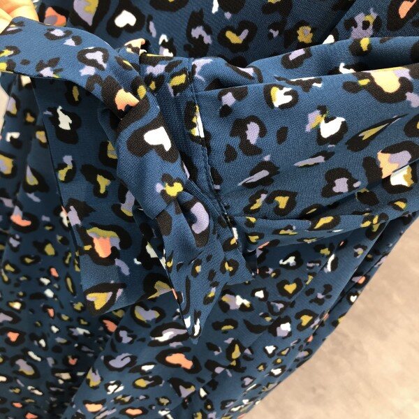 슬리브에 탈착 리본 디테일이 포인트인 컬러감있는 레오파드 프린트의 원피스입니다