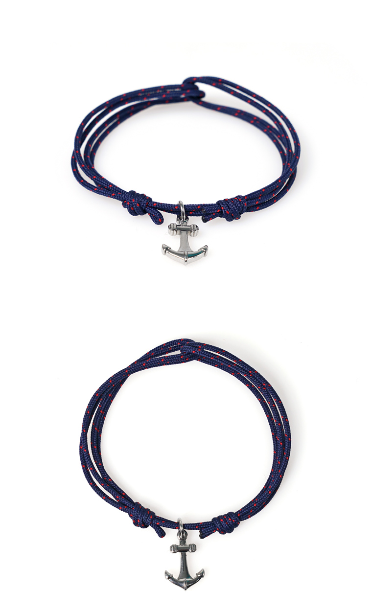 심플하게 착용하기 좋아 오랜기간 인기 있는 더블로프 타입 팔찌입니다. 기존에 사용된 장식보다 운동이나 야외 활동이 많은 계절에 변색이나 알러지 걱정을 최대한 덜어낼 수 있도록 앵커장식을 써지컬스틸을 사용해서 제작했습니다. 부담없이 심플하게 착용하기 좋으며, 다른 종류의 팔찌나 액세서리와 레이어드 연출하기에도 좋습니다. 남녀 모두 소화하기 쉬운 색상과 디자인에 커플팔찌입니다. 착용하기 좋도록 남성용, 여성용, 맞춤제작 사이즈로 제작되며 추가 비용은 없습니다.