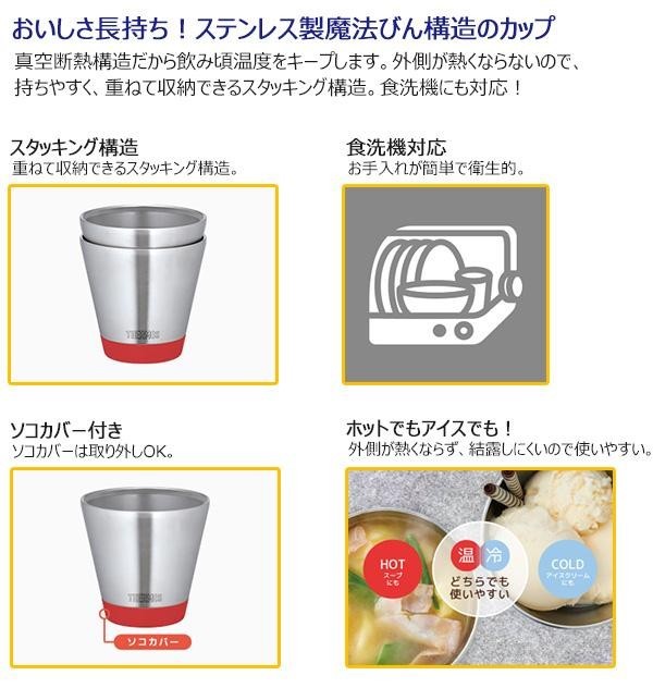 | サーモス卓上用品は素材感を生かしたスタイリッシュなデザイン。しかもステンレス魔法びんと同じ真空断熱構造なので、温かいものも冷たいものも、飲み頃温度を長時間キープ。使う場所を選ばず、楽しいくつろぎのひとときを演出します。 |