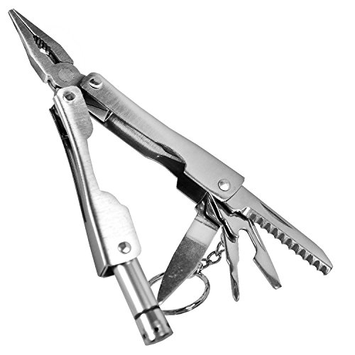 - Portable waterproof zipper tool case, inside is everything you need to help you survive: fire starter, knife, compass, whistle, saw, multipurpose flash light pliers.