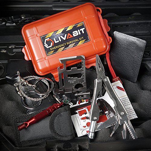 LIVABIT Survival Kit Emergency SOS Survival Multi Tool Pack + Bonus Paracord Bracelet for Camping Hiking Hunting Biking Climbing Traveling and Emergency