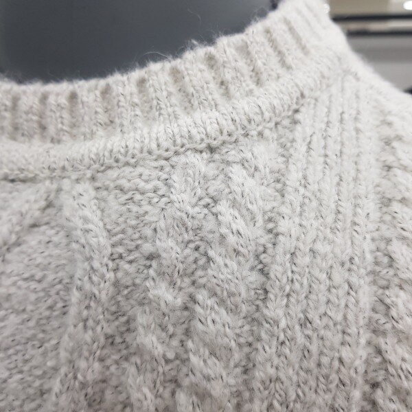 면 모헤어 혼용 라운드니트이며 꽈배기문양으로 고급스럽고 보온력이 최고이며 따뜻하게 입을수 있는 제품입니다