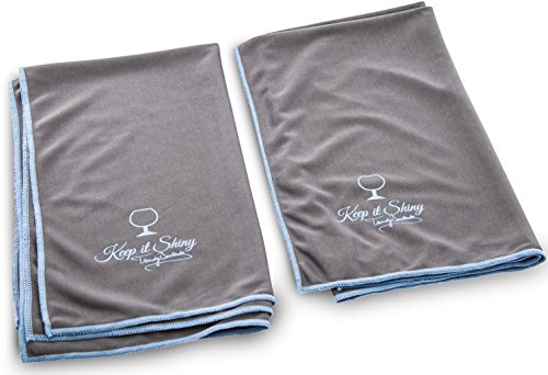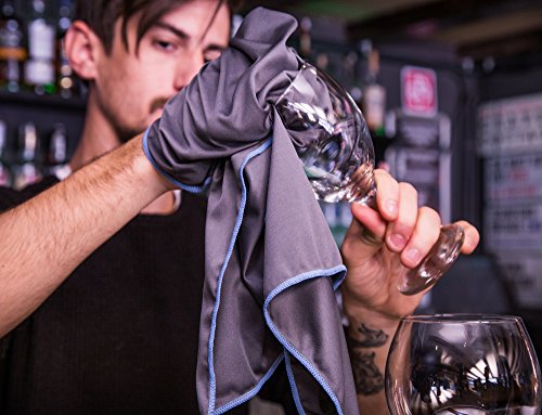 Extra Large Microfiber Glass Polishing Cloth (2-Pack) by Trendy Bartender - 25x20 inch Premium Lint Free Cleaning Cloth For Stemware etc - Bar Towel For Spotless Results - Premium Quality (Gray)