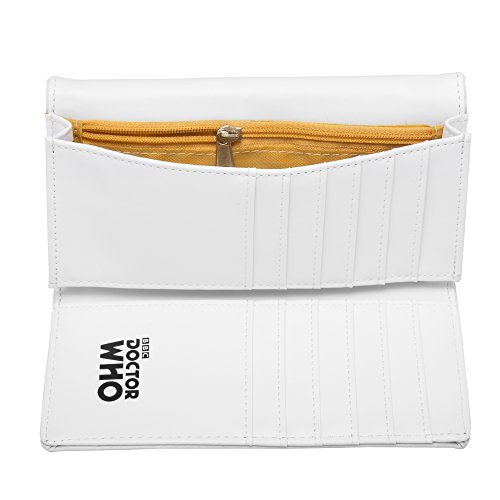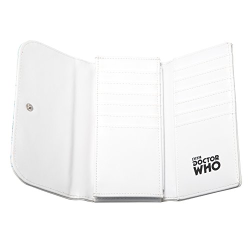 -. Feature : Wallet is embossed with the Doctor's iconic TARDIS / Grey and blue TARDIS console and Gallifreyan adorn this white purse / Spacious women's wallet has plenty of room for over a dozen cards, IDs, cash / Measures 6.5" by 3.5" / Easily fits into any handbag / Features a snap close / Officially licensed Doctor Who product!