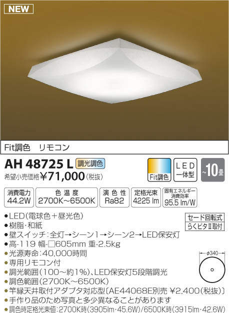 ●調色時定格光束値:2700K時(3905lm・45.6W)/6500K時(3915lm・42.6W)