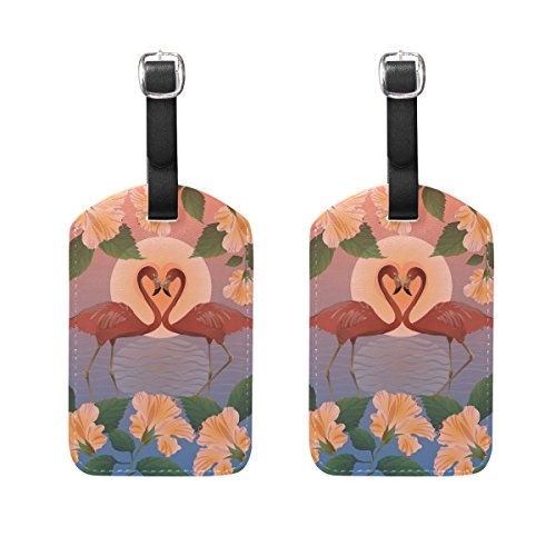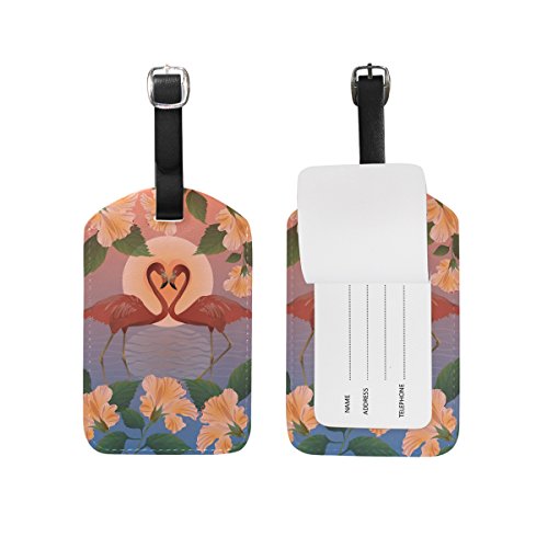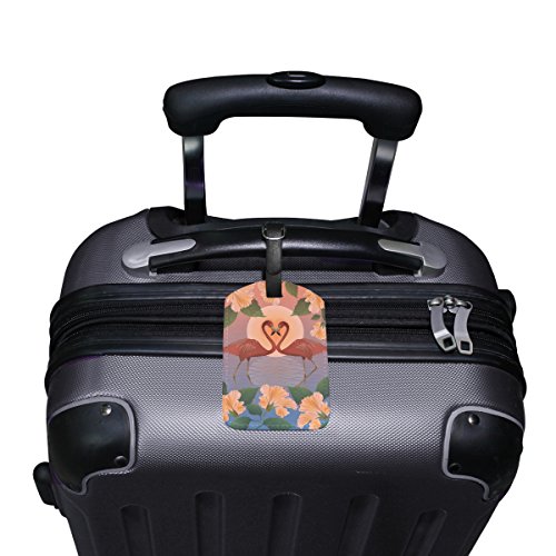 LORVIES Romantic Red Flamingos And The Moon Luggage Tags Travel Labels Tag Name Card Holder for...