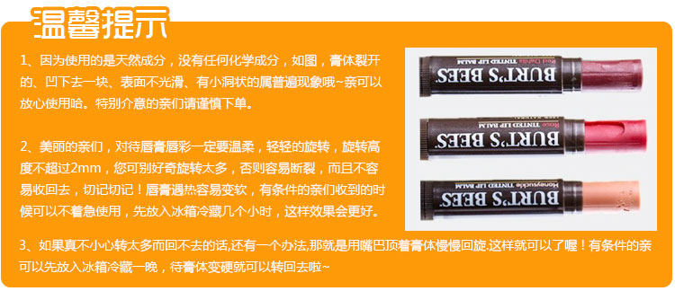 品牌:Burt's Bees小蜜蜂 名称:彩色润唇膏口红唇颊两用腮红
