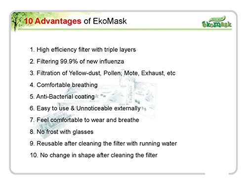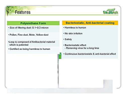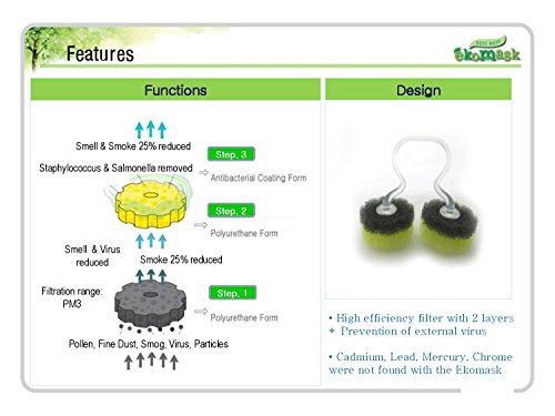Studio : G- Medcos International Publisher : G- Medcos International Binding : Health and Beauty Product Description Inserted Filter Materials Polyurethane Form, High efficiency filter with triple layers : Polyurethane form Polyurethane form Antibacterial coating , Filtering 99.9% of new influenza ,comfortable breathing with filtration of ,Pollen, , etc Easy to use Unnoticeable externally, Feel comfortable to wear and breathe No frost with glasses, Partially removal of smell Cleaning Reusable 2~3 times more after cleaning the filter with running water Reusable right after cleaning the filter Polyurethane Form ? Size of filtering dust: 0.1~0.3 micron ? Pollen, Fine dust, ?Loop is composed of Antibacterial material which is patented ? ?nose Dust Mask effectively blocks 99% of pollen, dust, and other minute air borne substances from entering the nasal passages. You just insert it gently into your nose, and it become unnoticeable.It offers an inexpensive, drug-free solution for avoiding harmful and irritating airborne particulates while maintaining a normal lifestyle. You can use it comfortably wherever and whenever you like throughout the year.It provides superior safety with its anti-bacterium and mildew proof finish as well as the removal of pollen. Ecomask is widely utilized not only for anti-pollen measures against escalating hay fever, but also for prevention of dust, mold etc. it protects you from inhaling pollen,dust, exhaust fumes, air pollution, etc.Protect yourself in spring and fall from pollen. it is ideal as well for protecting at airport terminals, commuters to prevent from inhaling air pollution and viruses size more than.3 microns. We recommend that you can normally use the nose filter for 4-5 hours before wash under normal condition but the use time may be short for a runny nose or dusty area etc. Washing time definitely depends on the use conditions.When you feel uncomfortable in breathing in and out, you're recommended to wash your nose filter. 0
