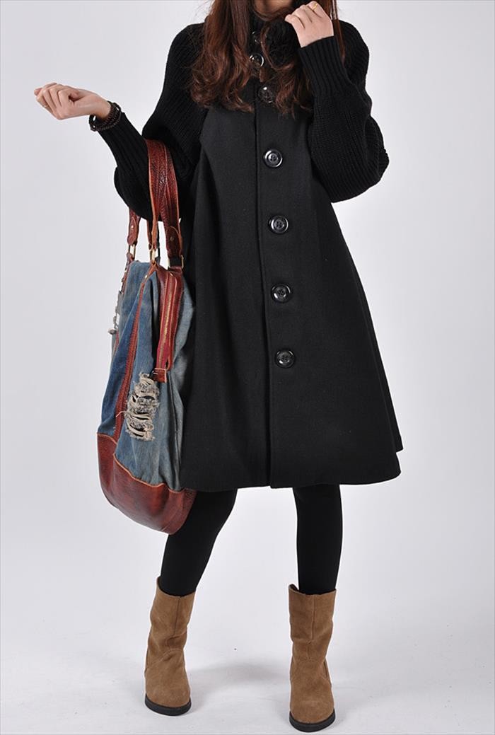 ●商品の特徴・ゆったりAラインシルエットが可愛い、リブ切替タートルネックロングコート。・袖と首回りがニットで切替になっているので、伸縮性が高く着心地はとっても楽チン♪・前身頃に施した大きめのボタンが全体を引き締める程良いアクセントに。・裾に向かって広がったフレアシルエットになっており、気になる体型もバッチリカバー♪●サイズ展開 【M】 着丈83cm バスト104cm 【L】 着丈84cm バスト108cm※平均での採寸となりますので、多少の誤差が生じる場合がございます。ご了承くださいませ。●カラー展開 ブラック グレー レッド ※画像をご参照下さい。●商品詳細 【素材】:ポリエステル、アクリル 【厚み】:やや厚手 【裏地】:なし 【シルエット】:ゆったり 【伸縮性】:あり(ニット部分のみ) 【付属品】:なし (コーディネート使用の衣類、アクセサリー等は付属しません)