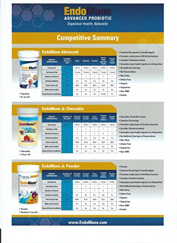 SAFE FOR EVERYONE TO TAKE. This probiotic is non-dairy, gluten free, certified Kosher, organic and vegetarian, and has no artificial colorings or preservatives. EndoMune Junior is also the only children’s probiotic certified as Parent Tested and Parent Approved.