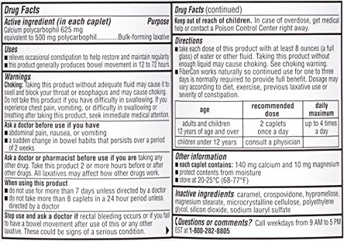 Fibercon Fiber Therapy For Regularity with Calcium Polycarbophil (140-Count Caplets)