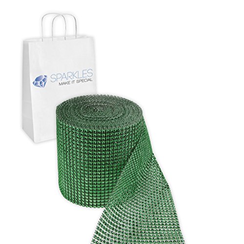 Sparkles Make It Special 24 Row Diamond Rhinestone Mesh Ribbon Trim Wrap - 4.5" x 10 Yard Roll - Wedding Cake Banding, Birthdays, Event Decorations, Party Supplies, Arts & Crafts - Green