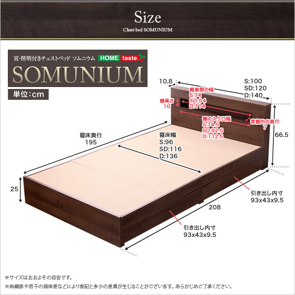 宮、照明付きチェストベッド【ソムニウム-SOMUNIUM-(ダブル)】