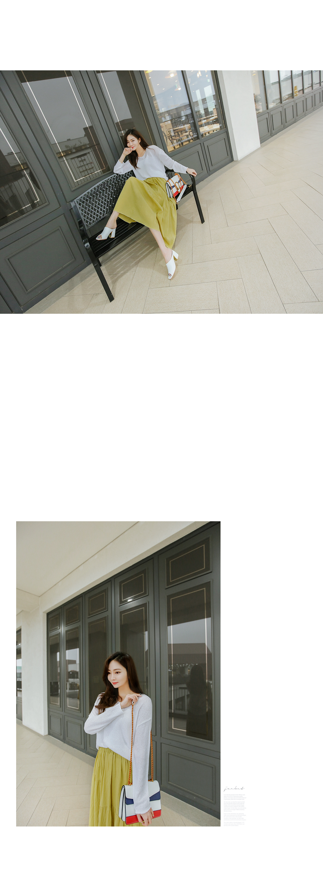 살짝 쇄골라인이 드러나는 V 네크라인으로,