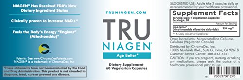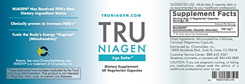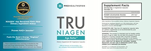 Studio : ProHealthspan Publisher : ProHealthspan Binding : Health and Beauty Product Description The importance of NAD to cellular health has been known in the scientific community for over a century. It repairs DNA damage, controls cellular metabolism, and regulates our "longevity" genes, which play a critical role in aging and long-term health. Shortages of NAD leave our cells at risk for mutation, dysfunction, degeneration and even death. Recent studies show that our levels of NAD decline as we age, suggesting an explanation for why we succumb to certain health issues as we get older. Replenishing NAD with TRU NIAGEN® is an advanced, science-based strategy to maintain energy and stay healthy as we age. NIAGEN® is the brand name for nicotinamide riboside (NR), a naturally-occurring compound found in trace amounts in milk. Pioneered and patented by our official partner ChromaDex, Inc., NIAGEN® is now the subject of many exciting studies on topics such as glucose control, weight management, and anti-aging. Every bottle of Tru NIAGEN® has to meet the highest standards of potency, purity and third-party certification. Tru NIAGEN® is manufactured under cGMP (current Good Manufacturing Practice) regulations, enforced by the Food and Drug Administration. And, Tru NIAGEN® is also certified by the NSF, a leading independent public health and safety organization. NIAGEN® has two important "pedigrees" in the field of nutritional supplements: NIAGEN® has achieved status as a New Dietary Ingredient by the Food and Drug Administration. NIAGEN® has achieved GRAS (Generally Recognized As Safe) status by an independent scientific panel. 0