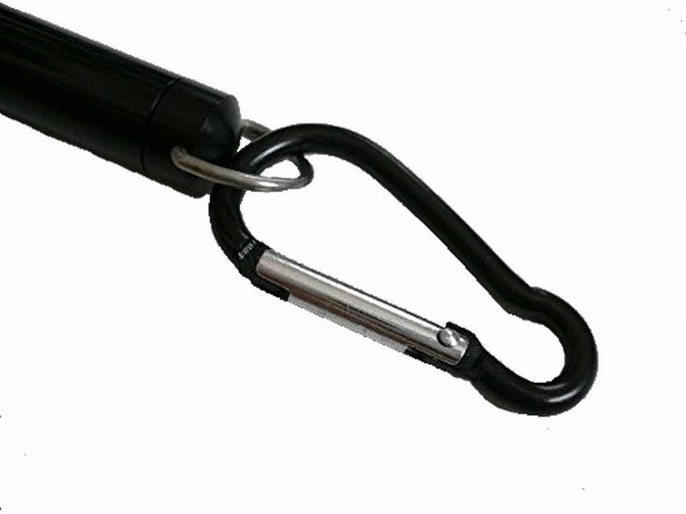 It is with a carabiner which is easy to install easily in a fishing vest, life jacket, D ring of a tackle bag and so on.