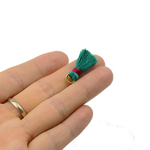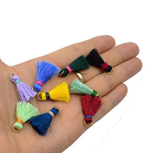 Makhry 50pc 0.8''(2cm) Soft Handmade Silky Floss Mini Tassel Earring Tiny Short Chunky Tassels with Gold Gold Jump Ring for Woman Earrings, Jewelry Making, Souvenir, DIY Craft Accessory
