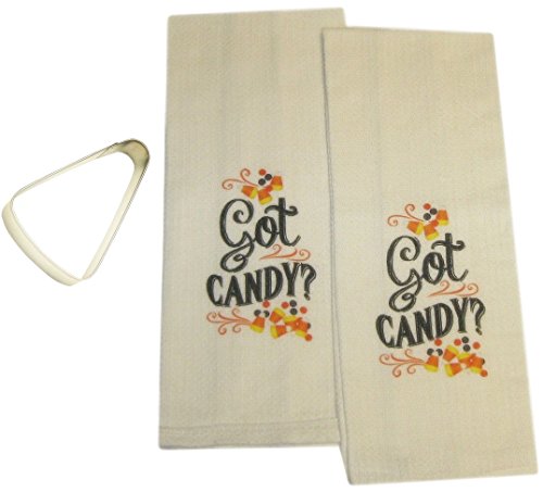 Got Candy Corn Dish Towels and Cookie Cutter Halloween Kitchen Bundle Set (3 Items)