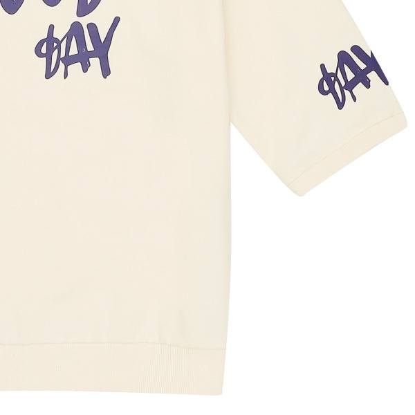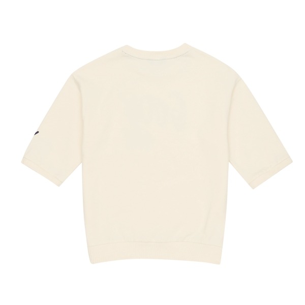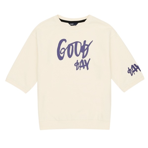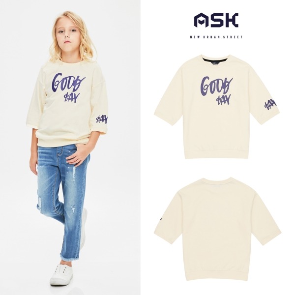 미니츄리 소재의 7부 티셔츠, 박시한 핏으로 활동하기 좋으며, 가슴과 소매아트윅으로 포인트를 준 스타일.7부 소매기장으로 간절기에 용