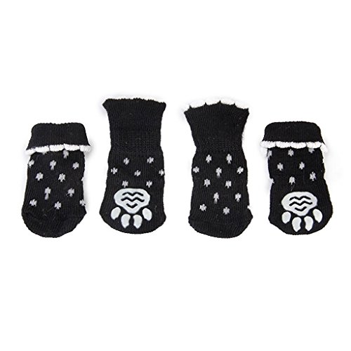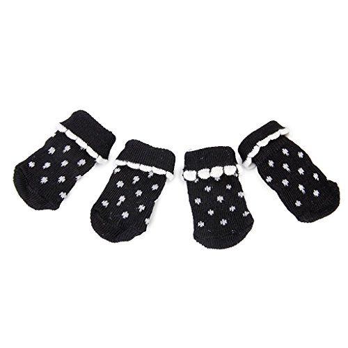 -. Title : sea-junop Cute Dog Non-Slip Socks with Paw Prints White Dots on Black(S)