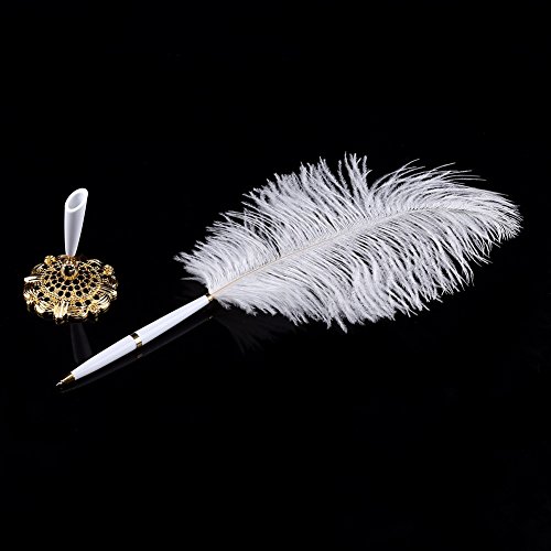 Ostrich Feather Wedding Guestbook Reception Pen Set With Gold/Sliver Holder ( Color : Gold )