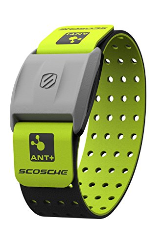Scosche RHYTHM+ Armband Heart Rate Monitor (ANT+ and BLE) You're dressed to get fit with your sneakers laced up tight, but how do you know you're going to get the most from your workout? Take your training to the next level with the RHYTHM+ Heart Rate Monitor from Scosche. The new Scosche RHYTHM + comfortably straps to your forearm to monitor blood flow and more accurately track heart rate, calories burned, distance, pace and more throughout your workouts. This fully wireless device has Bluetooth Smart ANT+ capabilities, allowing it to connect with smartphones, sport watches and exercise equipment. Use your favorite fitness app to manage your workout metrics and train harder and smarter. Features: Comfortable, adjustable armband to monitor heart rate. No chest strap neededComes in various color options to fit your personal style Rechargeable battery with eight hours of battery life Simply press the front button to turn on the device, and it quickly goes to work, using optical sensors to detect your heart rate. Waterproof up to one meter of penetration Wireless workout from up to 100 feet from your device Compatible with Bluetooth Smart or ANT+ devices that support heart rate data Compatible Fitness Apps: DigiFit Runkeeper MapMyFitness Strava Compatible Devices: Any iPhone or Android device Any ANT+ or Bluetooth Smart Device What's in the Box: Heart rate strap USB Charging cradle Manual Extra strapFeature