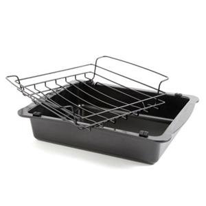 Oster Strathdon 18in carbon steel roaster & wire rack. The floating wire rack helps cook food evenly.